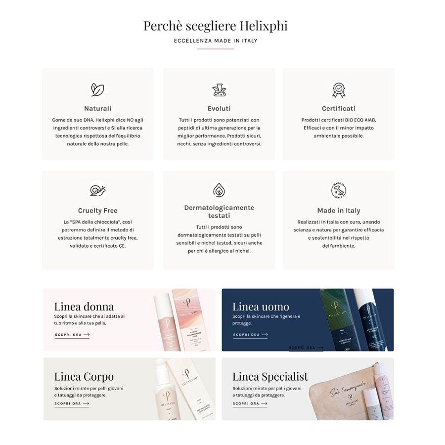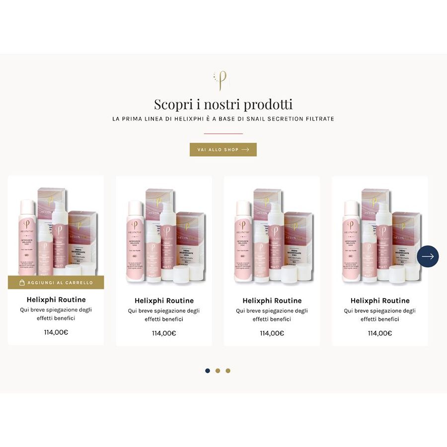 Per Helixphi ho realizzato il mockup grafico del nuovo e-commerce dedicato alla loro linea skincare a base di bava di lumaca.